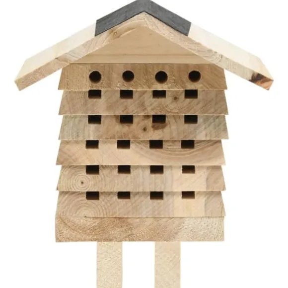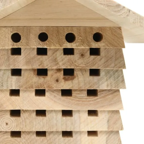 Hålstorlekarna på detta hotell är perfekta för att locka icke-svärmande bin såsom det röda murarbiet och andra ensamma bin. Bihotellet är konstruerat i hållbart granträ med ytterligare fack som kan öppnas för kontroll och rengöring.