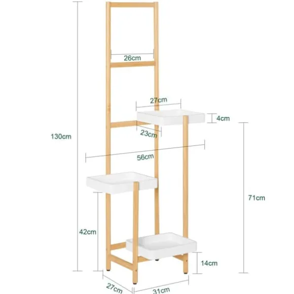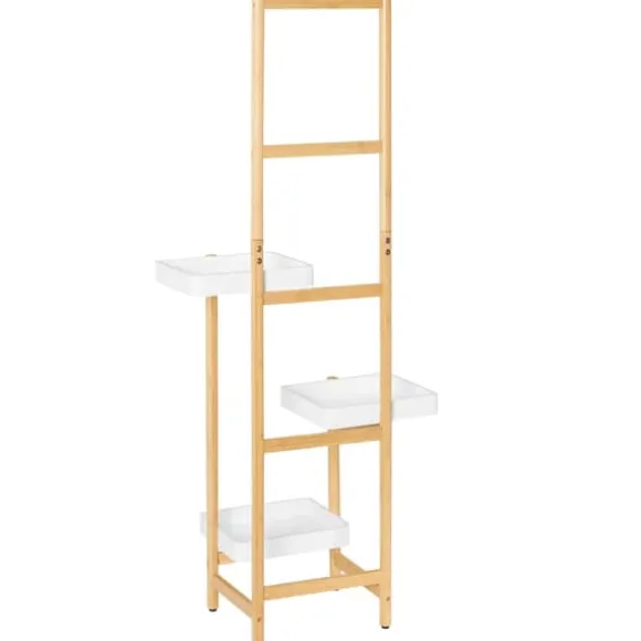 Elegant växtställ i bambu, vitt – en stabil och platsbesparande lösning som rymmer flera krukor samtidigt och ger dina växter optimalt ljus i vardagsrum, hall, balkong eller uteplats.