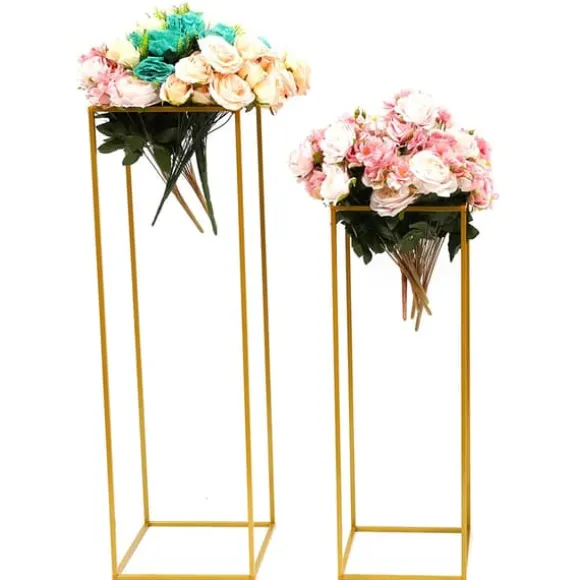 Elegant blomställ för romantiska bröllopsmiljöerDenna fristående blomställ i guld lyfter dina arrangemang i både inomhuslokaler och utomhusmiljöer. Den robusta konstruktionen i metall ger stabilitet, lång hållbarhet och är enkel att kombinera med blommor, rankor och tyll (dekoration ingår ej).