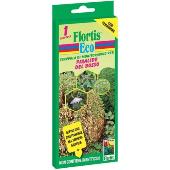 La trapparna för bokstekel från Flortis är lämplig för att övervaka insekten i vuxen fjärilsstadium, och använder en syntetisk replik av doften som honan producerar för att locka hanarna till fällan, där de fastnar på det klibbiga stöd. Fångsten av haninsekter minskar därmed befruktningen och antalet lagda ägg. Egenskaper för fällan: Förpackningar: 1 gul fälla med två klibbiga sidor, 1 snöre för att hänga den, 1 träpinne för att hjälpa till med nedsänkningen i marken, 1 feromonlockelse. För fångst utan användning av gifter, fälla för bokstekel (Cydalima perspectalis), vars larver snabbt äter upp bladen på bokträdet som blir gul-bruna, vilket leder till en snabb nedbrytning av växten. Användningssätt: dubbel användning, hängande: ta bort silikonpapperet som skyddar det klibbiga lagret på båda sidor, placera feromonet i den avsedda slotten, sätt in snöret i hålet och häng upp fällan. Nedsänkt i marken: ta bort silikonpapperet som skyddar det klibbiga lagret på båda sidor, placera feromonet i den avsedda slotten, sätt in fällan i marken med hjälp av träpinnen som finns i förpackningen, efter att ha stuckit den genom de två hålen. Det rekommenderas att installera fällorna från slutet av april till slutet av augusti, eftersom malens larver övervintrar i marken som puppor. De första vuxna fjärilarna kläcks i slutet av vintern, även om flygningarna blir särskilt viktiga först från mitten av juni. Det rekommenderas därför att installera fällorna från slutet av april till slutet av augusti. En fälla är effektiv för kontroll/övervakning av 3 till 5 träd (inom en radie av 15 meter). Byt ut fällan om den är full av insekter eller efter 6 till 8 veckors användning.