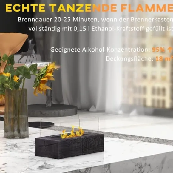 – Kompakt bordseldstad: Idealisk för soffbordet eller matbordet. Denna bärbara bordseldstad värmer en effektiv yta på upp till 18 m², perfekt för din relax- eller läshörna.