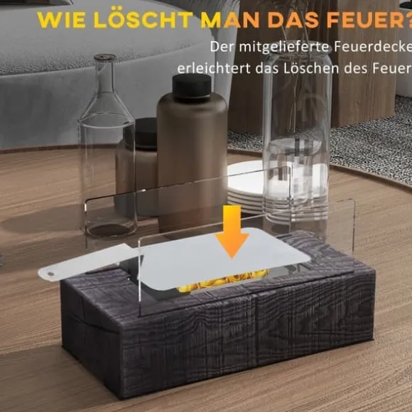 – Säker och ren: Kaminen drivs med bioetanol och avger varken rök eller skadliga gaser. Njut av lågorna utan sot, glöd eller aska. Ett lock medföljer för att släcka lågorna på ett säkert sätt.