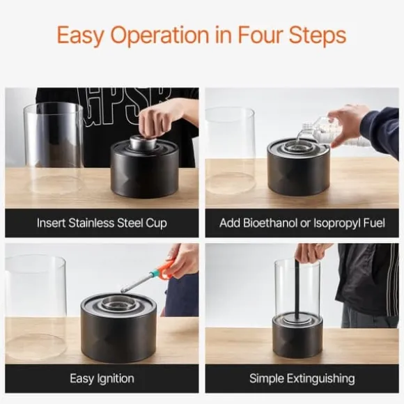 Med en 0,15L förbränningskammare, stöder detta eldstadsbord långvariga brännskador och är kompatibelt med både bioetanol och isopropylalkoholbränslen, som är lätt tillgängliga i närbutiker för ökad bekvämlighet.