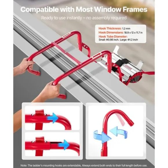 - Klar att använda: Brandstege för två våningar är kompatibel med de flesta fönsterkarmar. Ingen montering krävs – fäll bara ut och sätt igång direkt för en snabb och enkel utrymning i nödsituationer. (Obs: Stegens monteringskrokar är utdragbara. Dra alltid ut båda ändarna till sin fulla längd före användning)