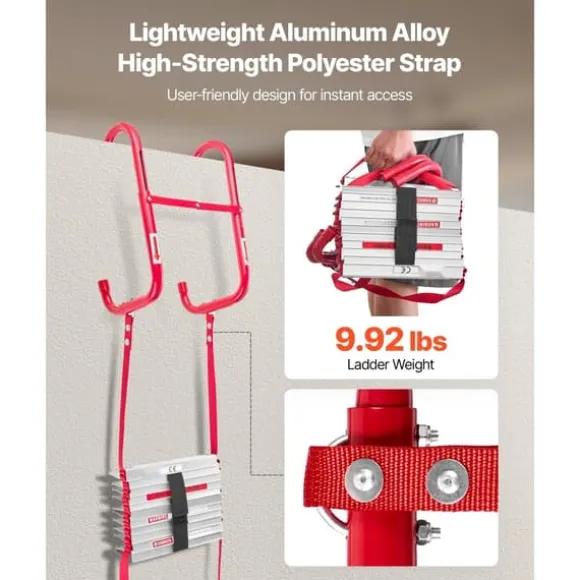 - Förstärkt säkerhetsstöd: Denna säkerhetsstege för brandutrymning är tillverkad av lätt men hållbar aluminiumlegering, brandsäker och värmebeständig. Förstärkt med höghållfasta fästskruvar och ett V-format centralt stöd, erbjuder den maximal stabilitet och säkerhet under användning.