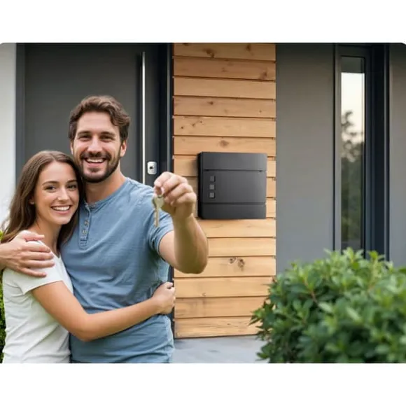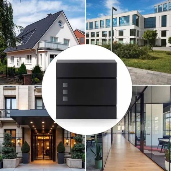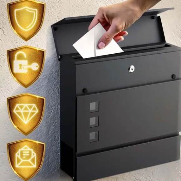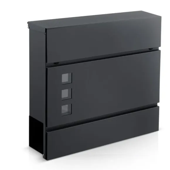 Tillverkad av korrosionsbeständigt galvaniserat stål och pulverlackerad i en elegant antracitfärg, skyddar den inte bara din post utan smälter också in perfekt i en modern fasad.