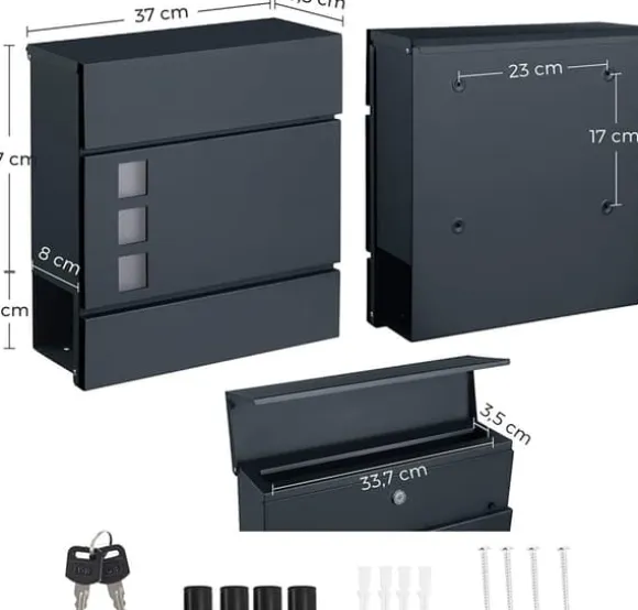 – Lätt att installera; Levereras med skruvar, expansionsbultar och gummiutrymmen, så att postlådan kan sättas upp utan krångel.