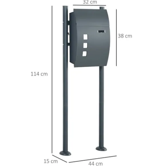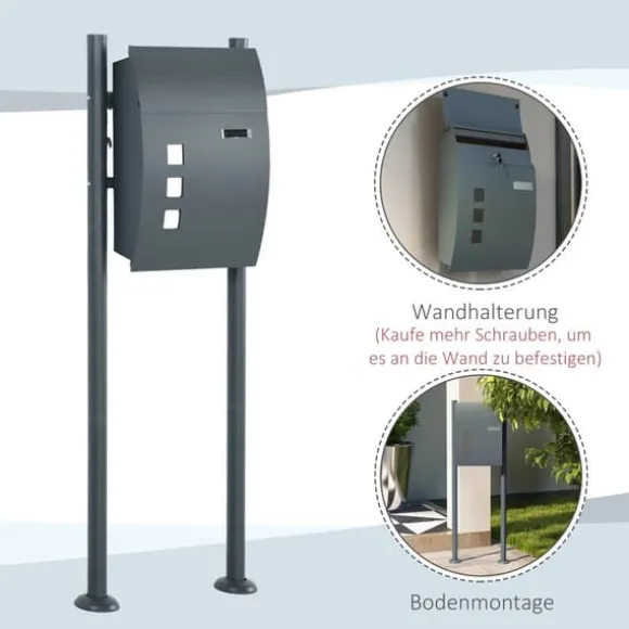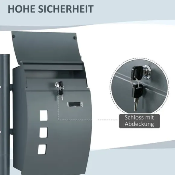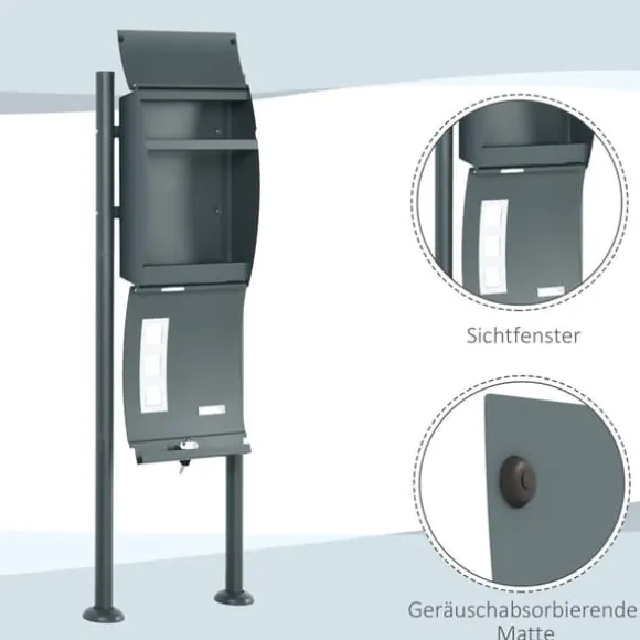 Väderbeständig brevlåda, säker och stilren postförvaring med hållbar stålkonstruktion och låsbar design, stor inre volym, flera inspektionsfönster, ljudabsorberande lock, idealisk för utomhusbruk och ger ett elegant tillskott till husets exteriör.