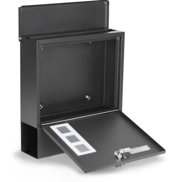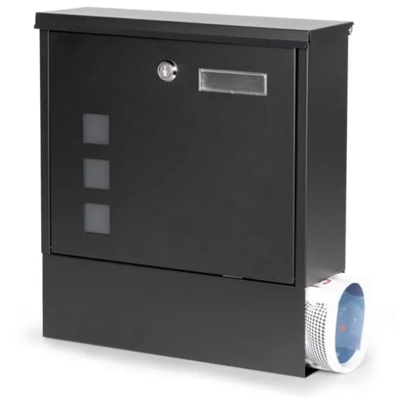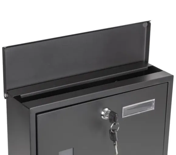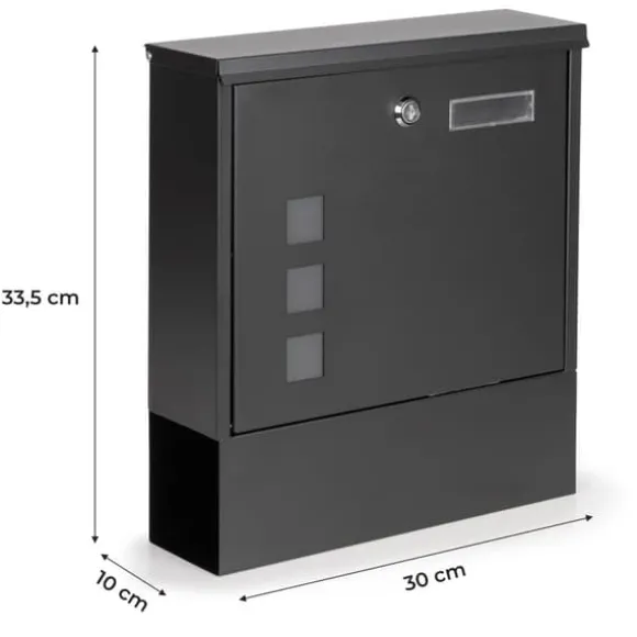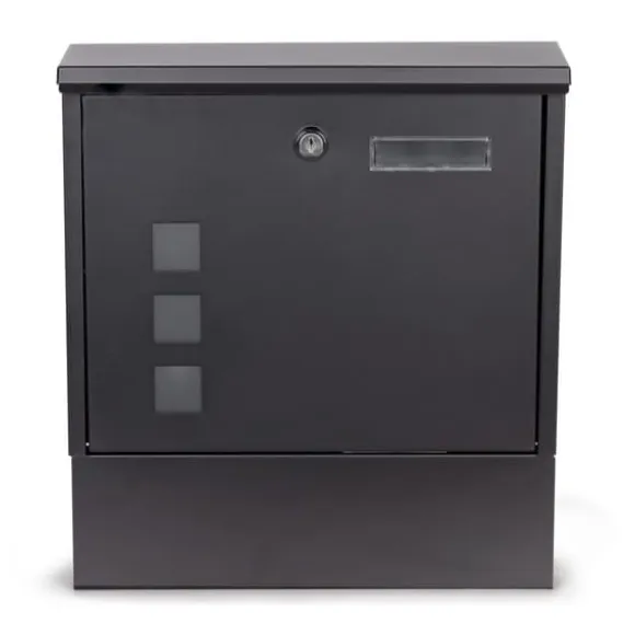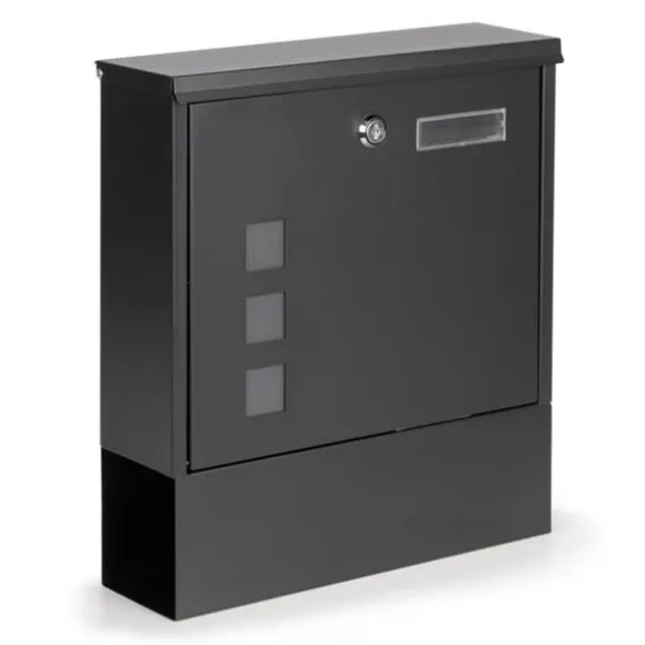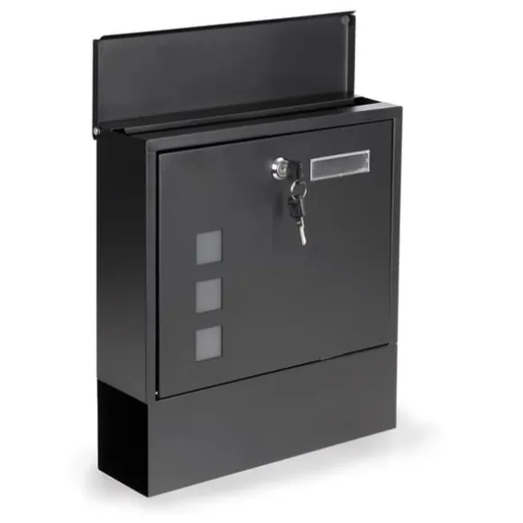 Postlådan är tillverkad av galvaniserat stål, vilket gör den motståndskraftig mot väderpåverkan. Väggbrevlådan kan monteras på porten eller på fasaden – monteringsstift ingår i satsen. Längst ner i brevlådan finns en rymlig tidningshållare som skiljer korrespondens från reklammaterial. Brevlådan har en snygg design och skyddar posten mot regn. De inbyggda visningsfönstren låter dig se om det finns post utan att öppna brevlådan. 2 nycklar ingår.