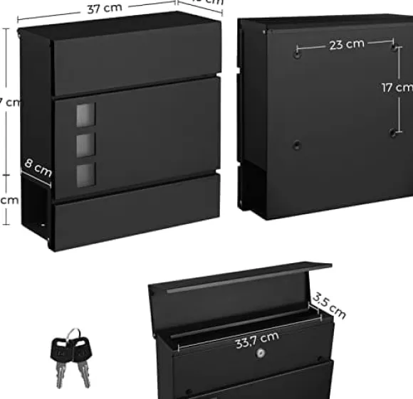 - Bra utseende: Vill du ha en snygg brevlåda som passar din moderna dörr? Prova den här Songmics Letterbox! Med sina smala linjer och klassisk antracitfärg är denna brevlåda både god hjälp och en dekoration
