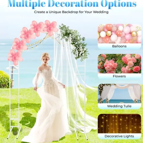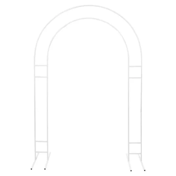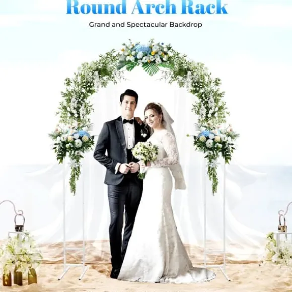 Elegant rund bakgrundsbåge i vitt för drömmiga tillfällenSkapa en romantisk och stilren scen med denna stora, runda bakgrundsställning i stål med värmebeständig vit lack. Perfekt för bröllop, fester och fotosessioner – solid konstruktion möter kreativ frihet.