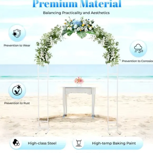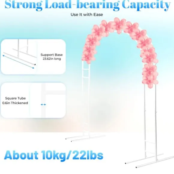 Extra dekorytaDet dubbla rörsystemet ger mer plats för täta blomarrangemang, fylliga ballongbågar och skimrande ljusdraperier.