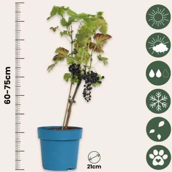 Vitis vinifera ’Nero’ är en välproducerande röd druva. Nero är känd för sina välsmakande mörkblå druvor, som är goda att äta direkt från vinrankan, men de ger också ett utsökt rött vin. Denna tåliga, kraftiga vinranka är lättskött och självpollinerande. Vitis vinifera ’Nero’ är en idealisk utomhusdruva för torrare platser.