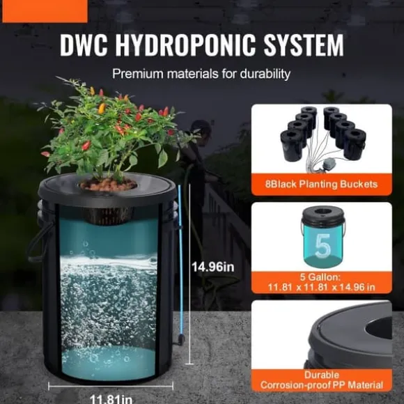 Vårt 5-liters DWC hydroponiska odlingssystem har PP-planteringshinkar som är robusta, hållbara, korrosionsbeständiga och temperaturbeständiga. Perfekt för långvarig användning utan deformation, perfekt för växthydrokultur.
