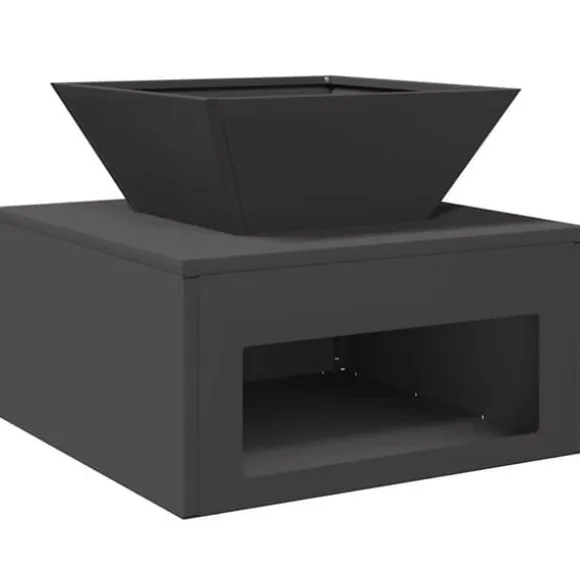 Den här utomhus eldstaden, gjord av starkt stål, är byggd för att klara av hög värme och skapar både värme och stämning för utomhussammankomster. Den kubiska formen och den moderna stilen med rena linjer gör den till en snygg detalj i varje trädgård eller på terrassen.