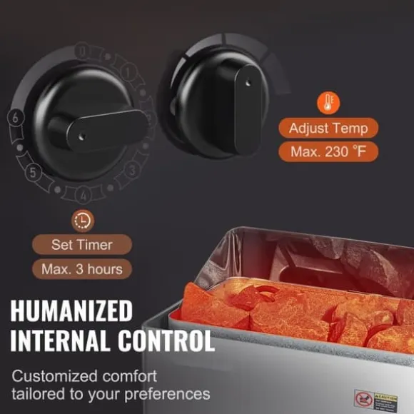 - Temperatur- och Tidsjustering: Med användarvänliga mekaniska rattar kan du enkelt kontrollera temperaturen och tiden för din bastuupplevelse. Upp till 230℉ och 3 timmars timer ger dig full kontroll.