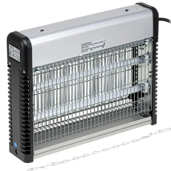 Med denna elektriska myggfälla med LED-lampa får du ett kraftfullt skydd mot oönskade insekter på ett helt kemikaliefritt och miljövänligt sätt. Två starka T5 F LED-lampor på 4,5 W vardera lockar till sig insekter med ett UV-ljus på 395 nm, och när de kommer nära elimineras de snabbt och effektivt med en elektrisk stöt på 2200 V.