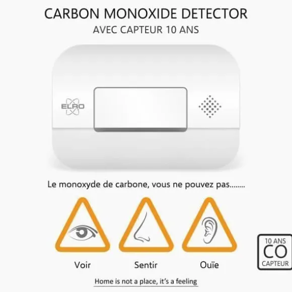 Denna detektor har en högkvalitativ elektrokemisk sensor som kontinuerligt mäter koncentrationen av kolmonoxid i luften. När koncentrationen är för hög avger detektorn ett starkt alarm på 85 dB. ELRO FC2702 uppfyller den europeiska standarden EN 50291-1:2010.