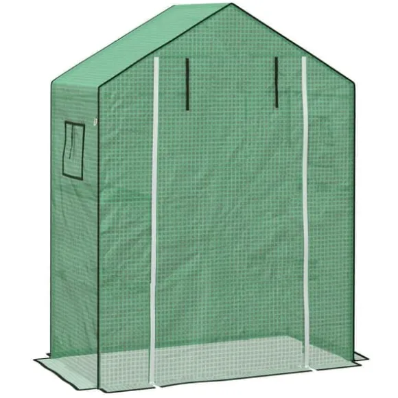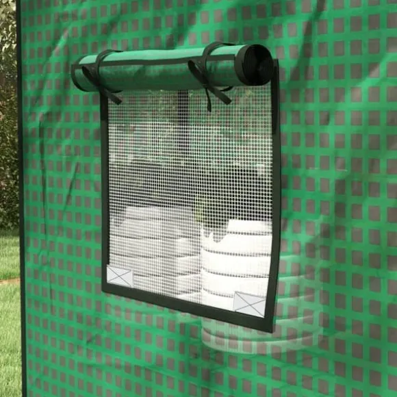– Dörr och fönster som kan rullas upp: Den generösa dörren med dragkedja på växthusfolien ger enkel tillgång till ditt växthus, medan nätfönstren håller insekter borta och reglerar luftfuktigheten optimalt