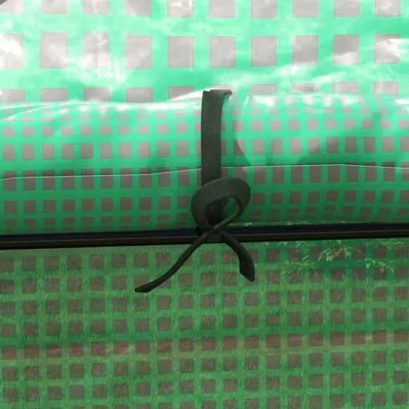 – Förstärkt plastfolie: Vår tvålagers 135 GSM växthusfolie är försedd med ett förstärkningsnät och kantad runt om för att förhindra att den går sönder. Så förblir dina växter säkert skyddade