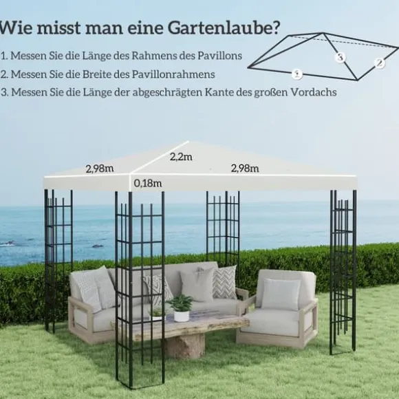 – Mått på paviljongtaket: 298L x 298B cm. Kontrollera måtten noggrant och mät ditt paviljongstativ för att säkerställa att det passar perfekt