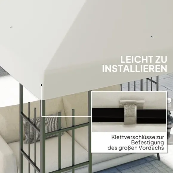 – Enkel montering: Paviljongtaket kan snabbt och enkelt fästas på stommen med kardborreband. Två personer kan montera det på bara 5 minuter