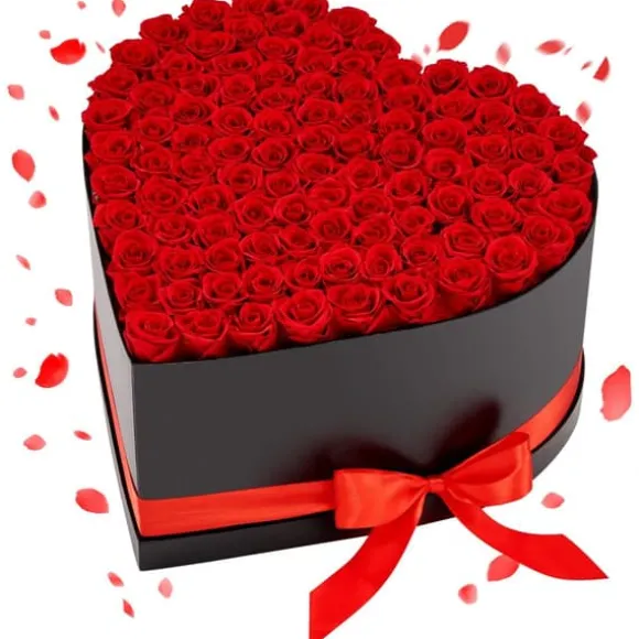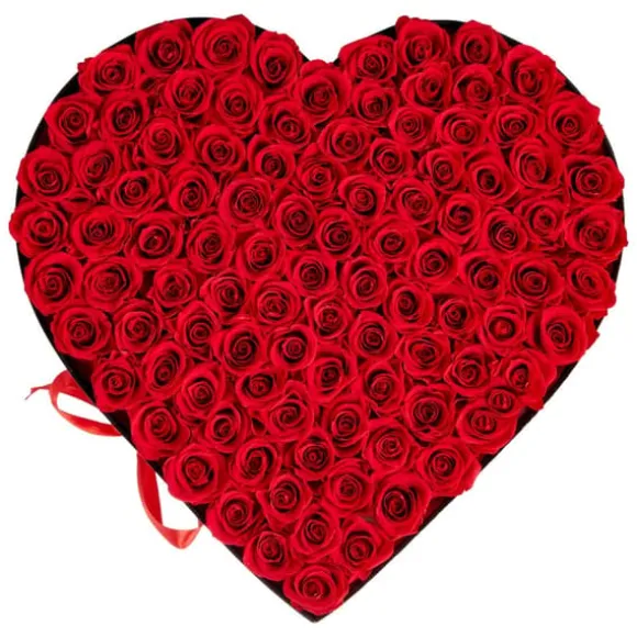 Romantisk hjärtformad rosbox med 100 äkta konserverade rosor – en exklusiv gåva och tidlös inredningsdetalj. Varje ros är varsamt bevarad för att behålla sin naturliga skönhet och färg i flera år, arrangerad för en livfull, elegant och romantisk presentation.