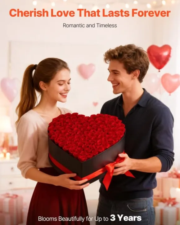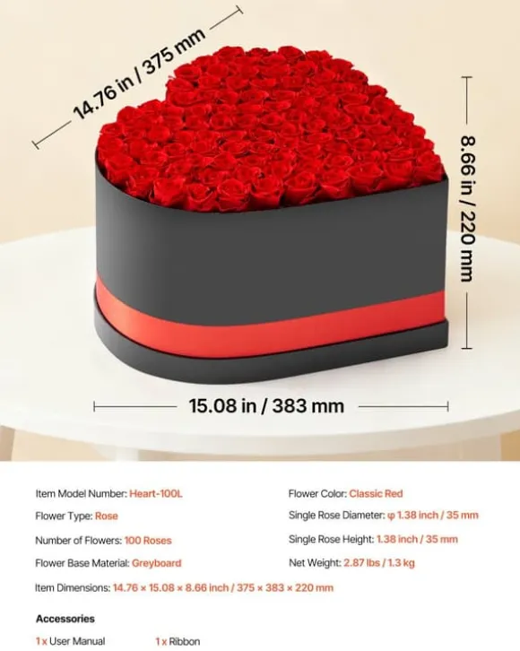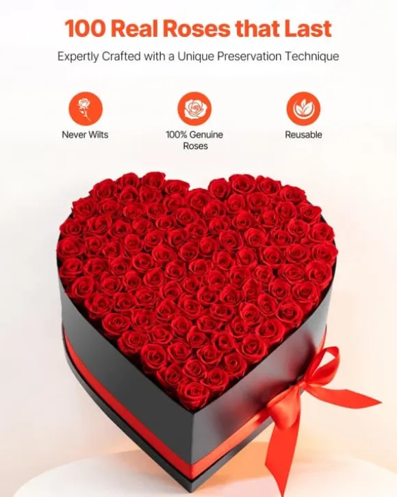 - Hjärtformad box med 100 konserverade rosor