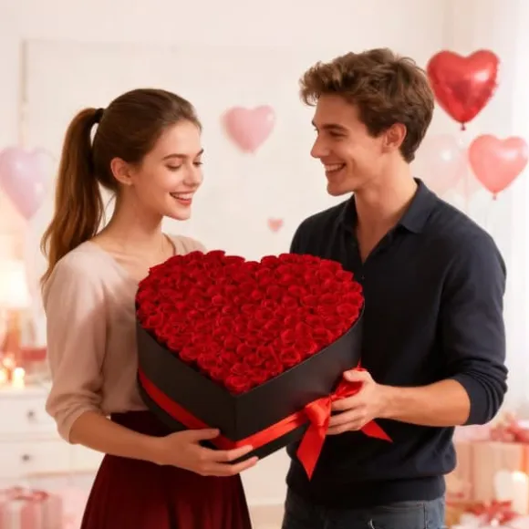 - Imponerande hjärtformad design med 100 rosor