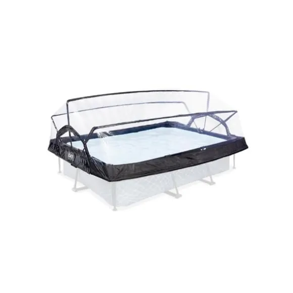 Skapa din egen inomhuspool på nolltid med denna EXIT-poolkupol! Med detta är du inte längre beroende av väderprognosen och du kan njuta av att bada i alla väder. Överdraget är lämpligt för rektangulära EXIT ovanjordssimbassänger som mäter 300 x 200 cm och för andra rambassänger med måtten mellan 290 x 190 och 300 x 200 cm. EXIT simbassängöverdraget är multifunktionellt. Det ser till att ingen smuts kan komma in i vattnet och är samtidigt en hållbar lösning för att värma upp vattnet. Solens värme hålls kvar, så att du kan njuta av en behaglig simtemperatur tidigare.