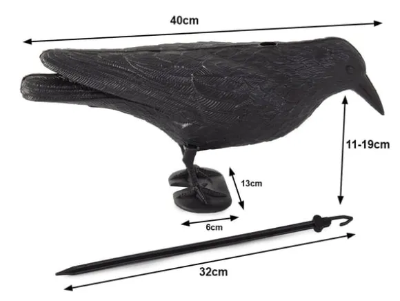 Statyn ärmycket hållbar, tillverkad av högkvalitativ plast,tålig mot skiftande väderförhållanden. Korpfattrappen är inaturliga dimensioner, vilket utgör en visuell skrämsel och hot mot andra fåglar och råttor.