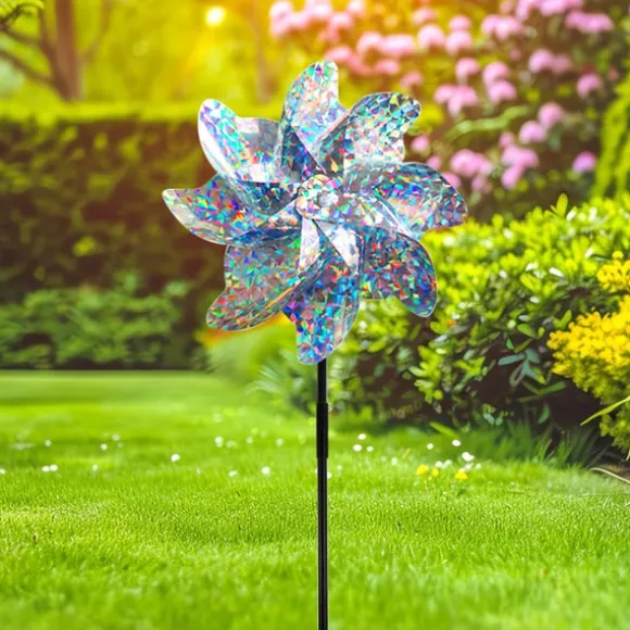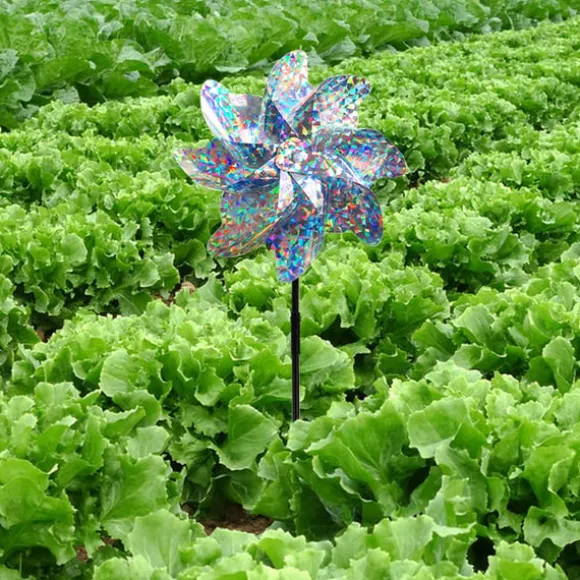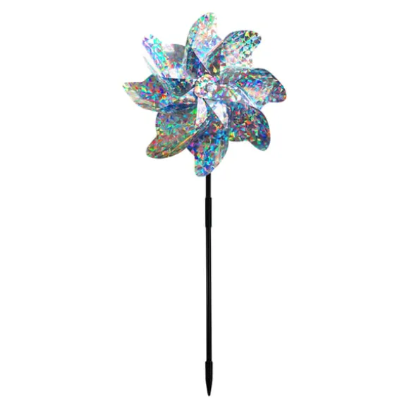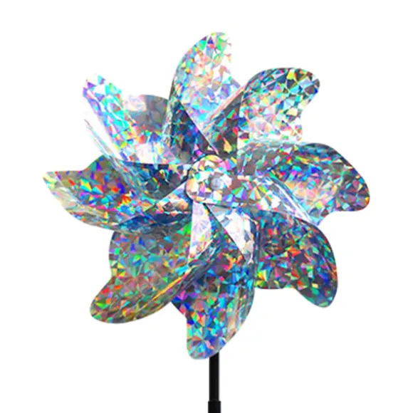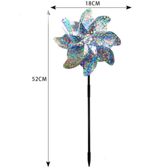Mycket reflekterande blad: Väderkvarnsbladen är designade med ett krossat blommönster som reflekterar solljus från flera vinklar, vilket skapar en bländande visuell avskräckning som effektivt skrämmer bort fåglar från din egendom.