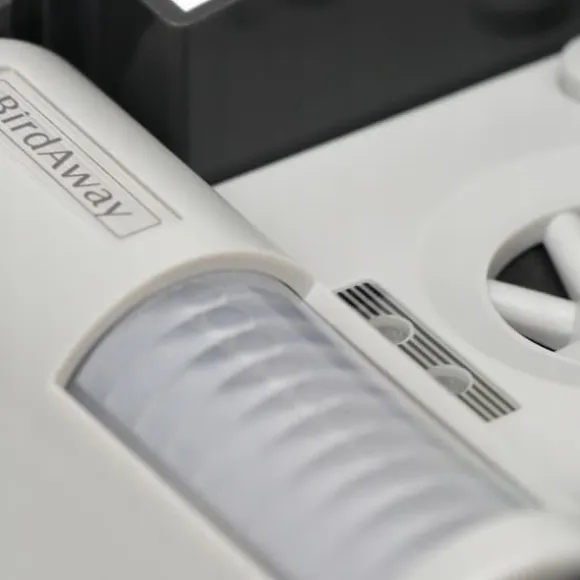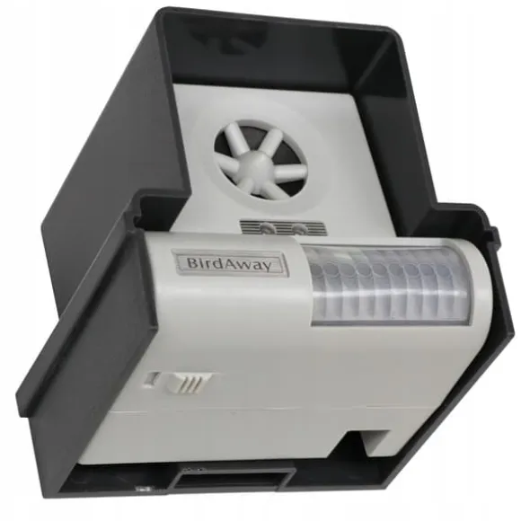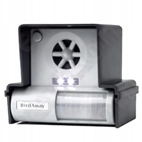 ✔️ Ultraljudsfågelavskräckare ( Birdaway ) utlöses när en inkräktare upptäcks blixt- och ljudsignal . Fåglar anar fara från sina naturlig fiende och undvik området som bevakas av Birdaway.