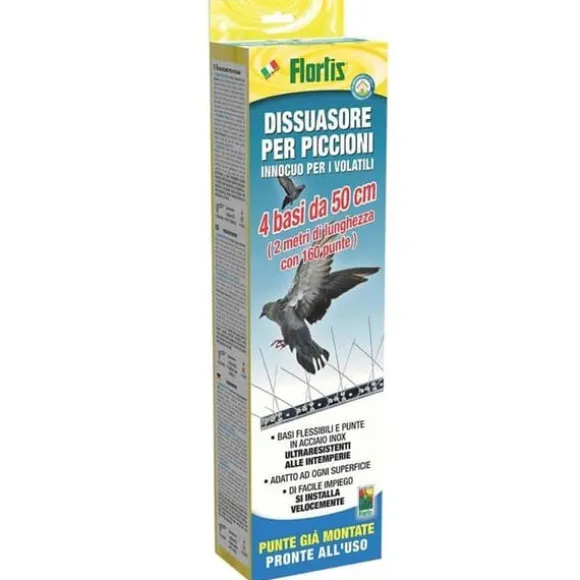 Fågelavvisare i rostfritt stål, 4×50 cm, grått. Mekaniskt system för att skrämma bort fåglar med baser och piggar i rostfritt stål som redan är monterade: förhindrar landning på fönsterbrädor, balkonger, takkanter och tak utan att skada djuren. Kitet innehåller 4 moduler på 50 cm för en täckning på upp till 2 m, kan appliceras på alla ytor, är knappt synlig när den väl är installerad och är väderbeständig och långvarig. Egenskaper Material: baser och piggar i rostfritt stål, robust och hållbar konstruktion. Klar att använda: förmonterade komponenter för snabb installation. Kontinuerligt skydd: förhindrar att duvor och andra fåglar stannar på hörn och exponerade ytor. Mått: 4 moduler x 50 cm (totalt 2 m). Installation Rengör ytan, placera modulerna på rad och fäst dem med lämpliga förankringssystem. Följ kanten för att täcka hela längden som ska skyddas.