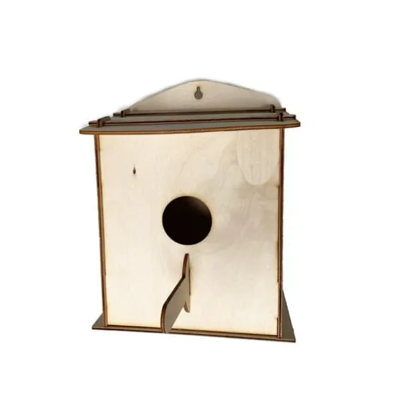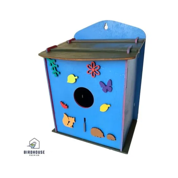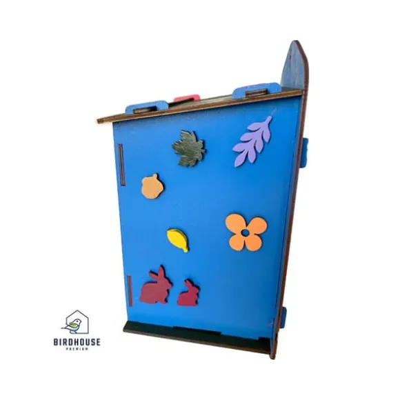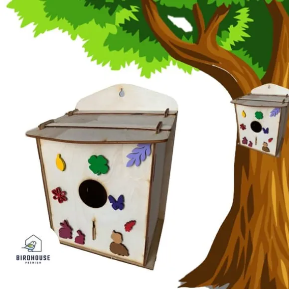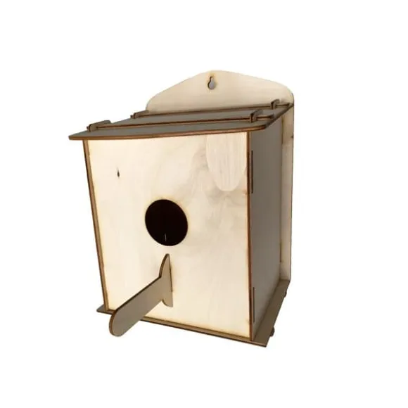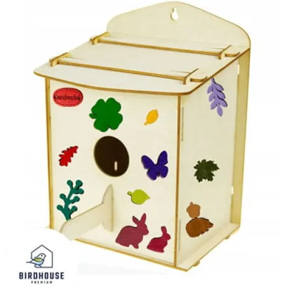 Vi uppmuntrar alla barn att skapa sitt eget fågelholkkoncept. Detta kit kan användas omålat (ljusbeige plywoodfärg) eller målat valfri färg.