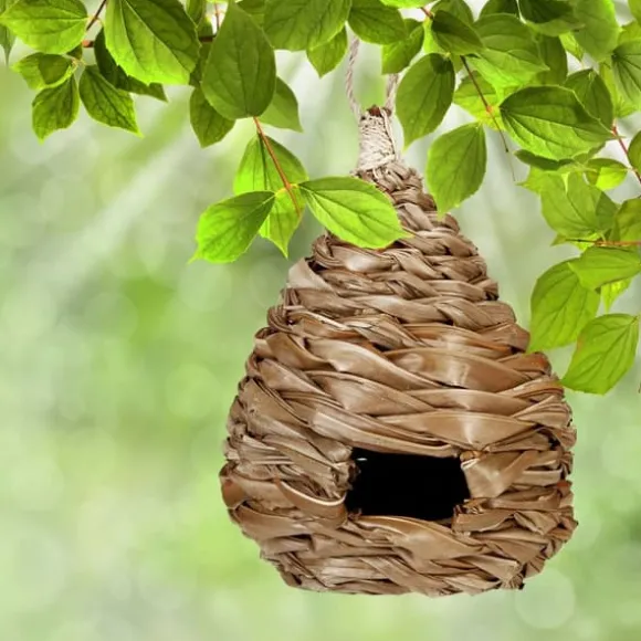 Detta dekorativa fågelhus, tillverkat av kokosfibrer, tillför en naturlig charm till ditt hem eller trädgård samtidigt som det ger en mysig boplats för små fågelarter. Dess flätade design och enkla upphängningsögla gör det både praktiskt och stilfullt, perfekt för balkonger, terrasser eller träd. Detta fågelhus är också en omtänksam present till fågelälskare.