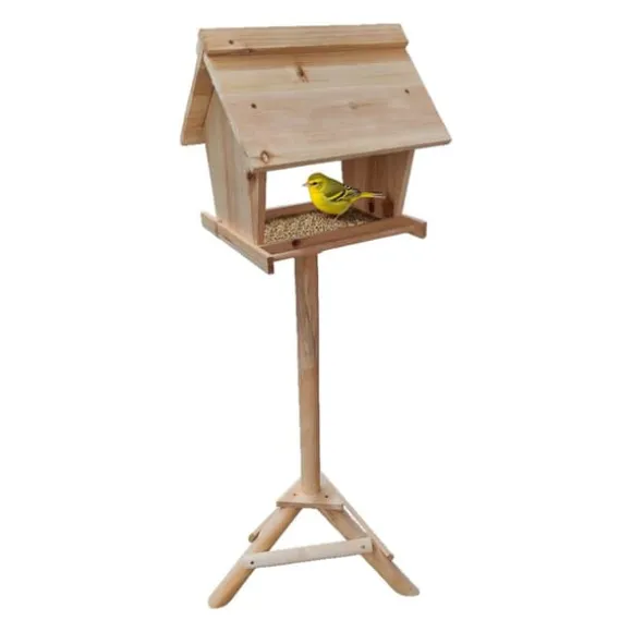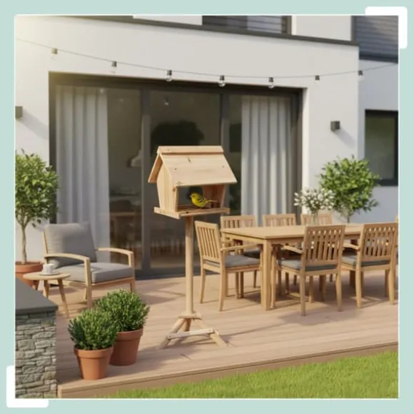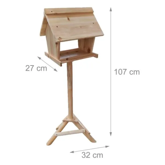 Denna fristående fågelmatare i naturligt trä erbjuder en säker och inbjudande matplats för inhemska fåglar året runt. Dess höga stativ skyddar fåglar från rovdjur medan de inneslutna sidorna håller maten torr, vilket gör den idealisk för placering i trädgård eller på terrass och ger utmärkta fågelskådningsmöjligheter för alla åldrar.