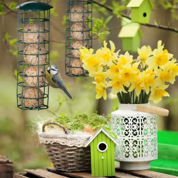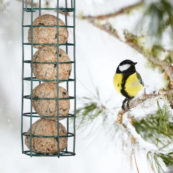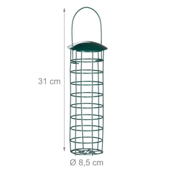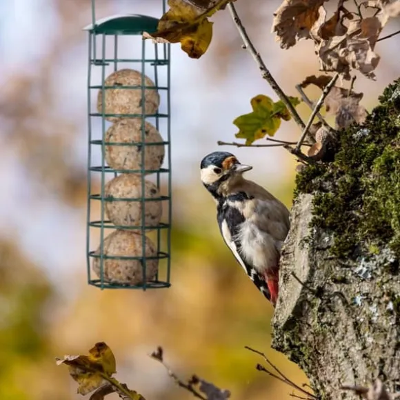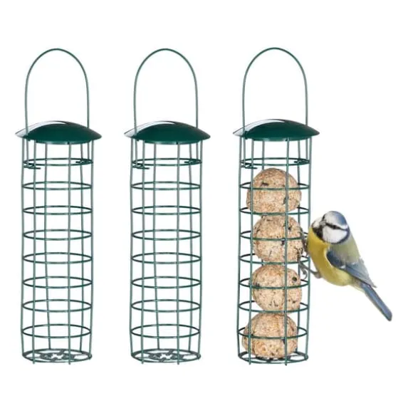 Detta set med tre hängande fågelmatare är perfekt för att locka starar, hackspettar och andra vilda fåglar till din trädgård. Utformade för att erbjuda talgbollar utan nät, gör dessa matare det möjligt för flera fåglar att äta samtidigt och är enkla att fylla på och rengöra genom att lyfta taket. Den hållbara konstruktionen gör dem lämpliga för utomhusbruk.