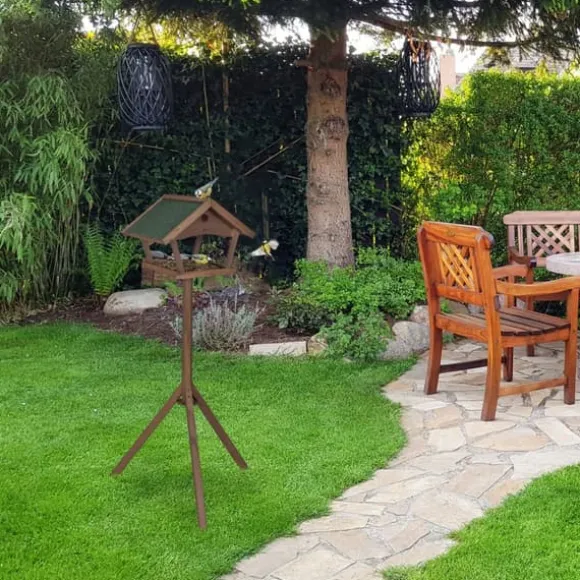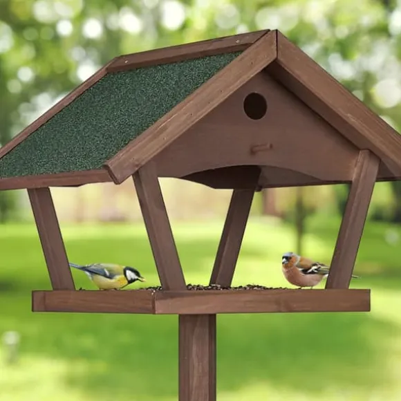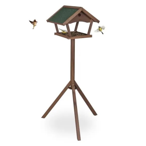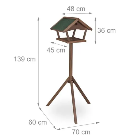 Detta fristående fågelbord är en idealisk matare för att locka inhemska fåglar till din uteplats eller trädgård, och erbjuder ett trevligt sätt för både barn och vuxna att observera djurlivet på nära håll. Dess väderbeständiga tak och robusta konstruktion i granträ garanterar hållbarhet, medan den lättfyllda designen gör fågelmatningen bekväm. Den mångsidiga basen gör att du kan placera det var du vill utomhus.