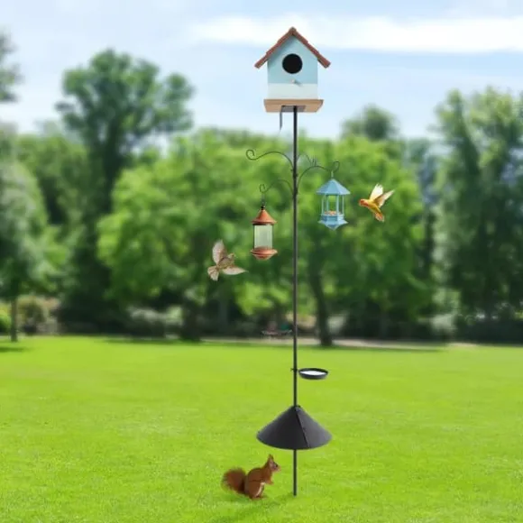 - funktionell design: har flera krokar för upphängning av matare och dekorationer, tillsammans med ett dubbelt skålsystem för mat och vatten, som tillgodoser olika fåglars behov.
