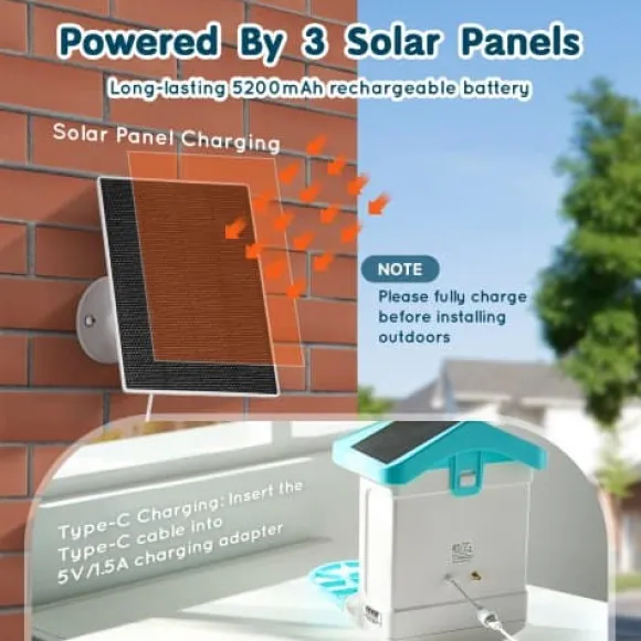 - 3 solpaneler (2 på taket, 1 extern)