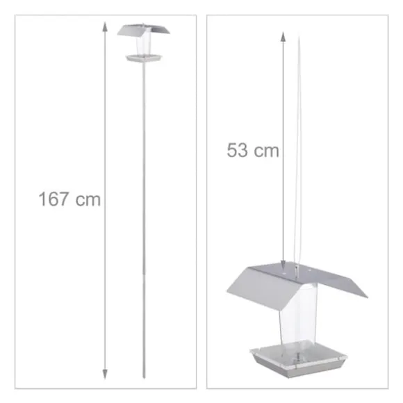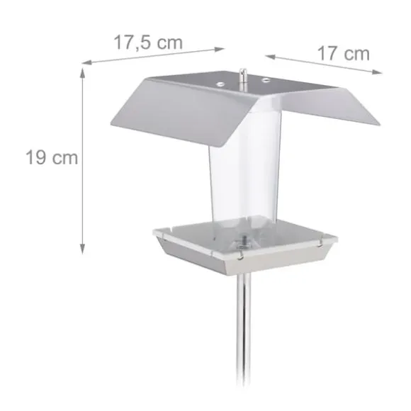 Denna fågelmatare i rostfritt stål är perfekt för att observera vilda fåglar året runt. Den öppna designen gör det enkelt att hålla koll på fodernivån, medan den väderbeständiga konstruktionen skyddar fågelmaten mot väder och vind. Mataren är lätt att fylla på och passar för olika sorters frön, jordnötter eller mjölmask, och kan hängas upp eller placeras på en yta.