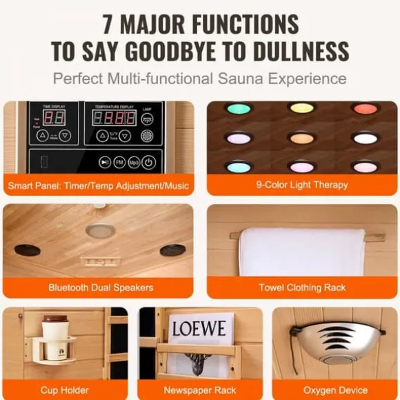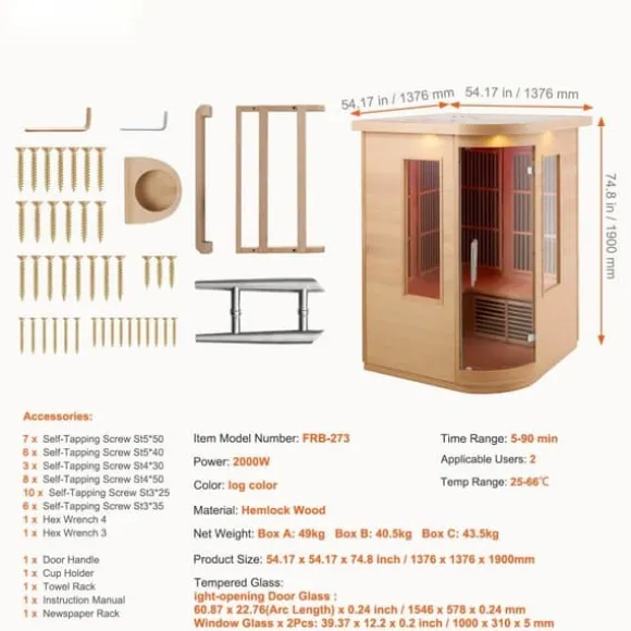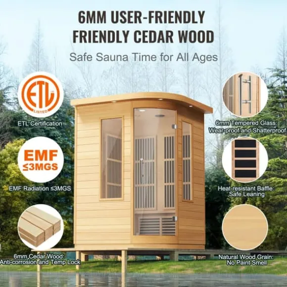 Med ett kraftfullt 2000W snabbvärmningssystem erbjuder bastun ett brett uppvärmningsområde från 77℉ till 149℉. Den är ETL-certifierad för säkerhet med ett EMF-strålningsvärde ≤ 3MGS. Den inbyggda fjärrinfraröda grafenvärmepanelen kan förbränna cirka 300 Kcal på bara 30 minuter dagligen, vilket hjälper dig att uppnå en vältränad kropp utan ansträngande träning.