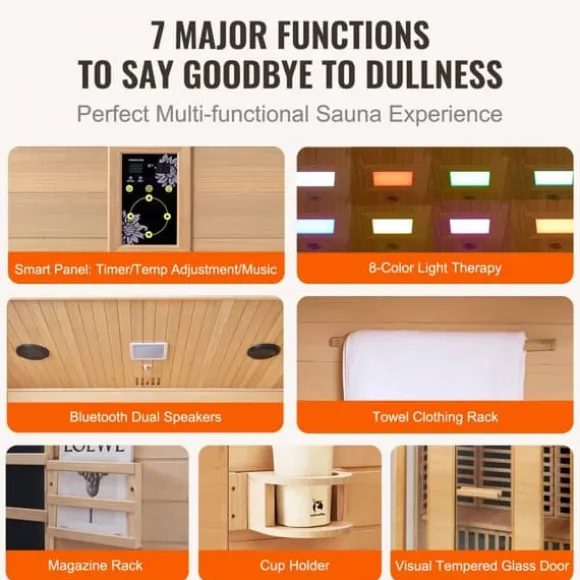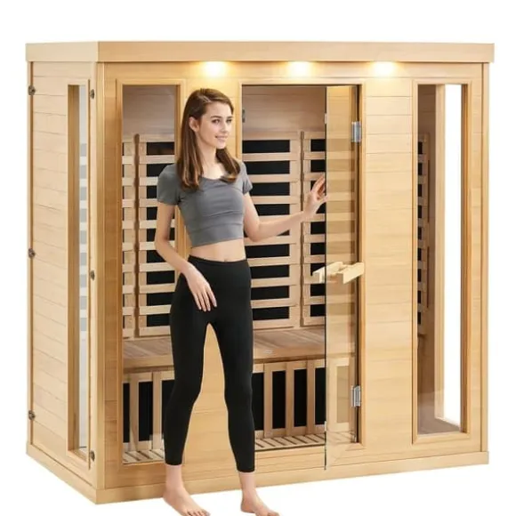 Säker och enkel fettförbränning: Med ett kraftfullt 2580W snabbvärmningssystem erbjuder bastun ett brett uppvärmningsområde från 86℉-149℉. Den är ETL-certifierad för säkerhet med ett EMF-strålningsvärde ≤ 3MGS. Den inbyggda fjärrinfraröda grafenvärmepanelen kan förbränna cirka 300 Kcal på bara 30 minuter dagligen, vilket hjälper dig att uppnå en vältränad kropp utan ansträngande träning.