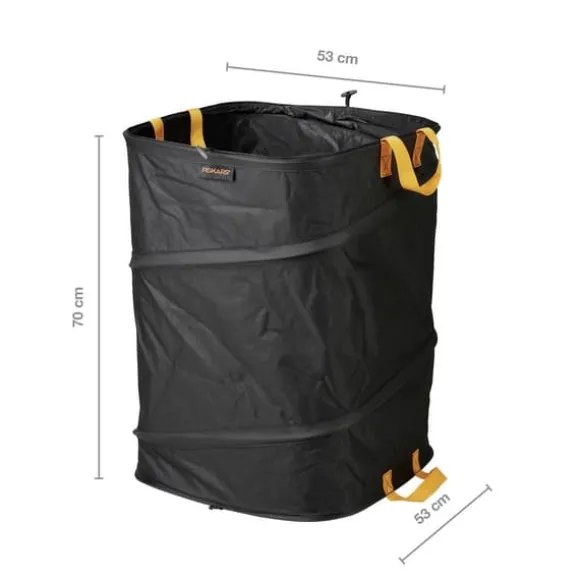 - ideal för att samla in våta trädgårdsavfall som fuktiga blad eller gräsklipp, ogräs eller även leksaker På insidan finns en fjädermekanism som öppnar säcken för användning Vatten- och mögelresistent material för en enkel rengöring Lång hållbarhet tack vare användning av mer hållbart plastmaterial ( ingen användning av PVC) Kvadratisk form med stabila handtag för enkel påfyllning och lätt att bära Hopfällbar för platssparande förvaring
