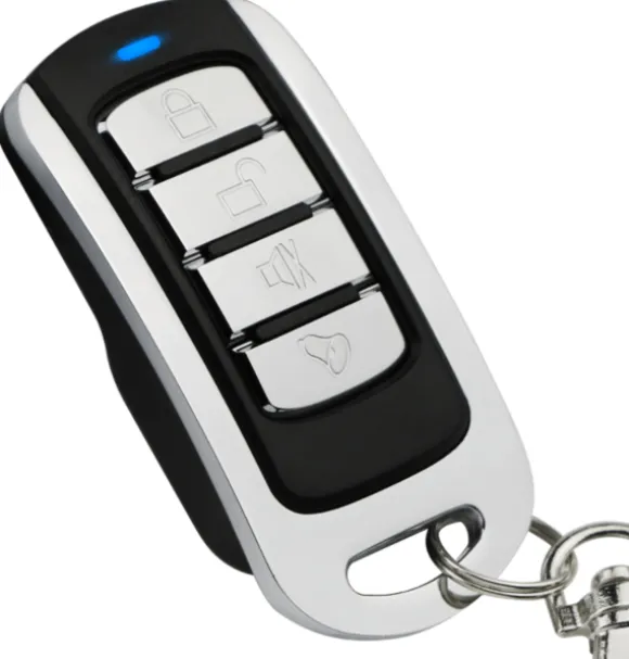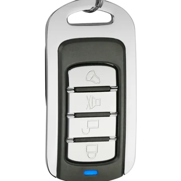 Bekvämt och praktiskt: När du har kopierat originalkontrollerns signal kan du ersätta den med den här fjärrkontrollen. Med praktisk karbinhake att fästa på nyckelknippan med dina andra nycklar. Den är utrustad med fyra olika knappar och fungerar på längre avstånd på upp till 150 meter.