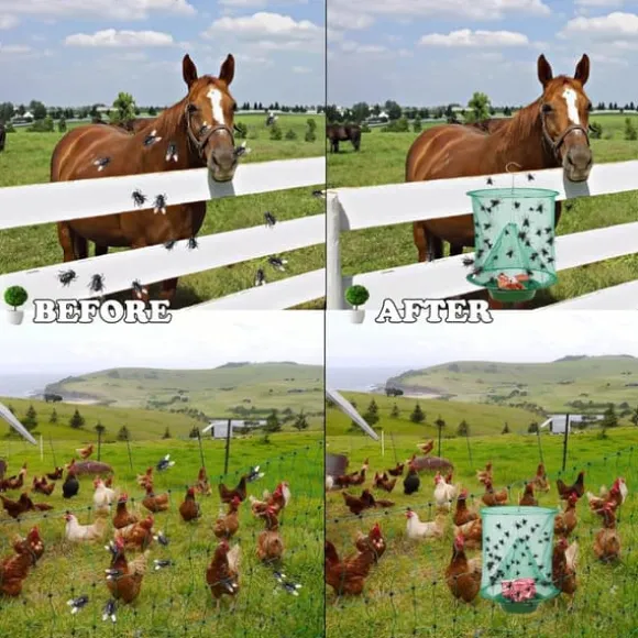 Säker att använda runt husdjur och familj. Flugorna lockas in genom små hål tack vare betets doft och dör naturligt av uttorkning och hunger utan vatten eller mat. Den återanvändbara påsen är ren och skapar inget kladd. Undvik direktkontakt med döda flugor för bästa hygien.