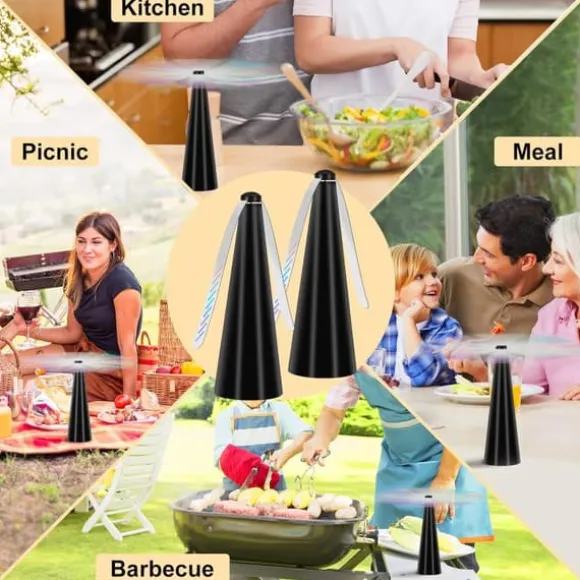 Med nästan ljudlös operation stör den aldrig måltider eller samtal. Den kompakta designen fungerar med både USB eller 2 AA-batterier (ej inkluderade) och väger minimalt – enkelt att packa i ryggsäck eller handväska. Eliminera sommarproblem med insekter på ett säkert, miljövänligt sätt utan döda insekter i maten.