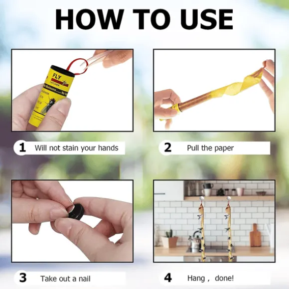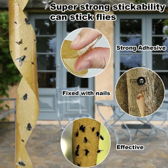 Flugpapper – Säkert material: Flugremsan är tillverkad av robust papper och superlim, på vilken flugorna fastnar.
