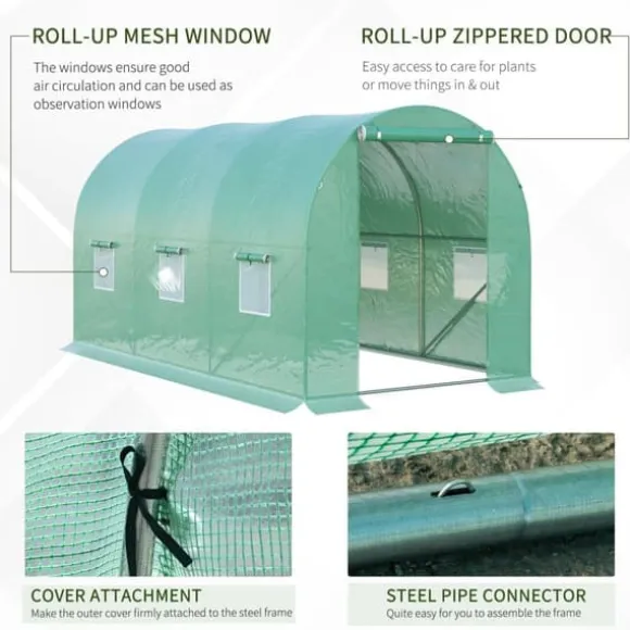 – Det optimala växthuset: De transparenta folierna är ljusgenomsläppliga, så att dina växter alltid får tillräckligt med ljus och värme och samtidigt skyddas från väder och djur. Fönstren och dörrarna med dubbla dragkedjor garanterar god luftcirkulation.